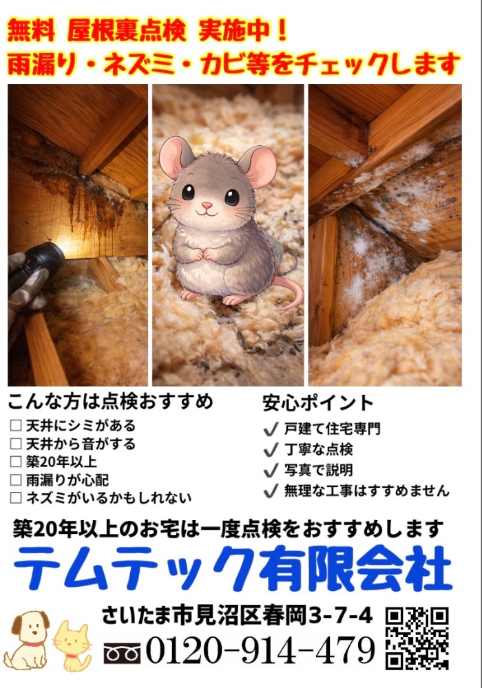 埼玉県全域対応|屋根裏点検・屋根裏補修・雨漏り補修