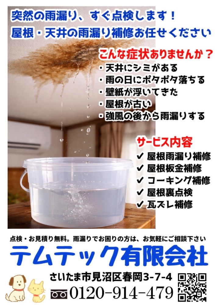 埼玉県全域で屋根裏点検・雨漏り補修を行っております。